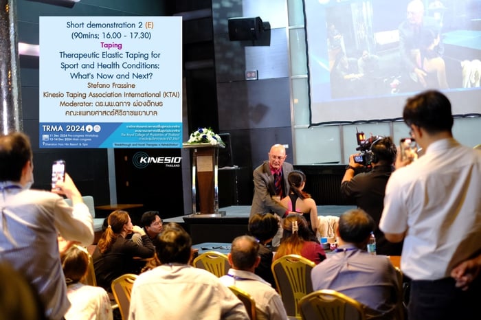 ในงานประชุมวิชาการ ปี 2567 ที่ โรงแรมเชอราตัน หัวหิน กับหัวข้อ Therapeutic Elastic Taping for Sport and Health Conditions: What’s Now and Next? โดย Dr. Stefano Frassine ได้รับการตอบรับเป็นอย่างดี ในการบรรยายในวันนั้น โดยเป็นการบรรยาย และมีการสาธิตแนวคิด และวิธีการติดคิเนซิโอเทป